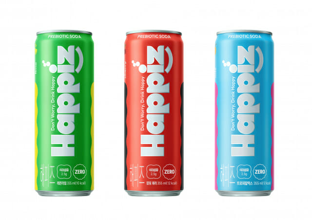 해피즈는 제로 슈거·제로 칼로리를 적용하고 식이섬유를 함유한 음료로, 355ml 캔 기준 식이섬유 2.5g을 담은 프리바이오틱 소다로, 당과 칼로리 부담을 낮췄다. 또한, 자사 특허균주를 활용해 유자·생강·보리·현미·녹차 등 국내산 발효 원료 5종을 사용한 점도 차별 요소 중 하나다.